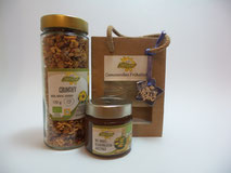 Von unseren reichhaltigen hofeigene Bio-Produkten haben wir für Sie einige genussvolle Geschenktaschen zusammengestellt.